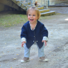 Pour limiter la surconsommation, Little Woude propose des vêtements évolutifs et réversibles pour les garder plus longtemps. Avec des manches plus longues et une coupe large, ce gilet est conçu pour être porté environ 2 ans.