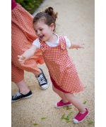 Fabriquée avec soin en France, cette robe arbore un motif vichy classique et intemporel. Elle se marie à merveille avec la jupe assortie des mamans, pour un look matchy matchy plein de charme et de complicité entre mère et fille.