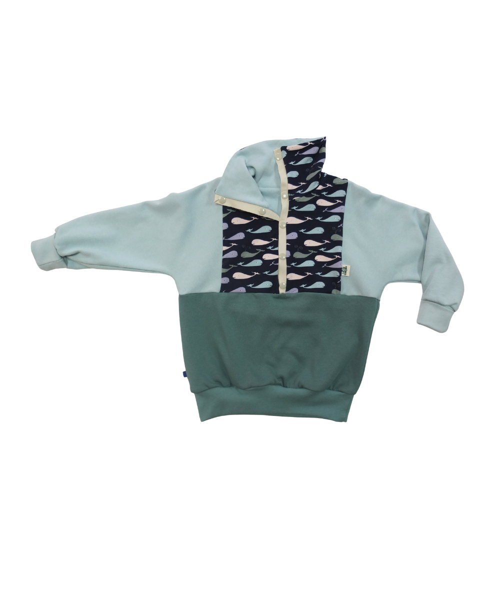 Sweat Évolutif Coton Bio - Motif Baleines - Enfant & Adulte